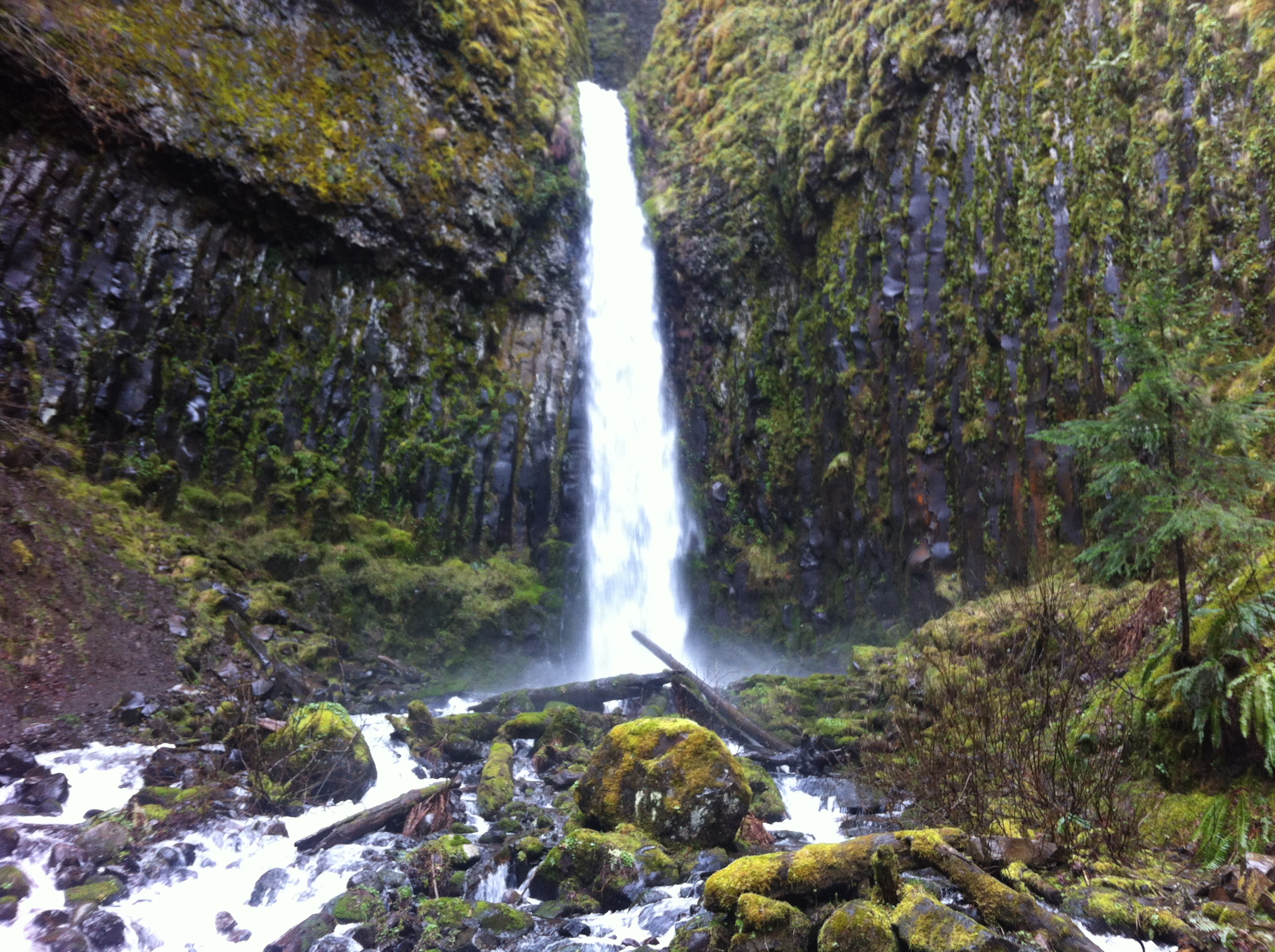 When we hit the junction that met up with Dry Creek Falls, we decided to take a short side trip to see it. There are never enough falls. They are lovely. There was also a nice bridge, feature, that my sister wanted desperately to cross for some reason. We did and we continued to hike up the trail. I would guess we did about 6 miles, but I can’t be sure. I also have no idea how much elevation, but we climbed for most of the hike. At some point, after a couple hours, my sister said, “I’m tired of going this way. Let’s eat and head back.” There was no where dry to eat so I sat on my hoodie in the middle of the trail. My sister ate standing up. There was little fanfare. We shared some water and headed back down.